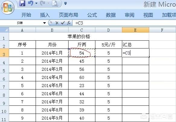 材料 工具:excel20071、打开电脑,点击打开Excel2007表格;2、以苹果的价格为例子,来求一下苹果每月共销售多少钱?3、选中汇总下面的空格,也就是