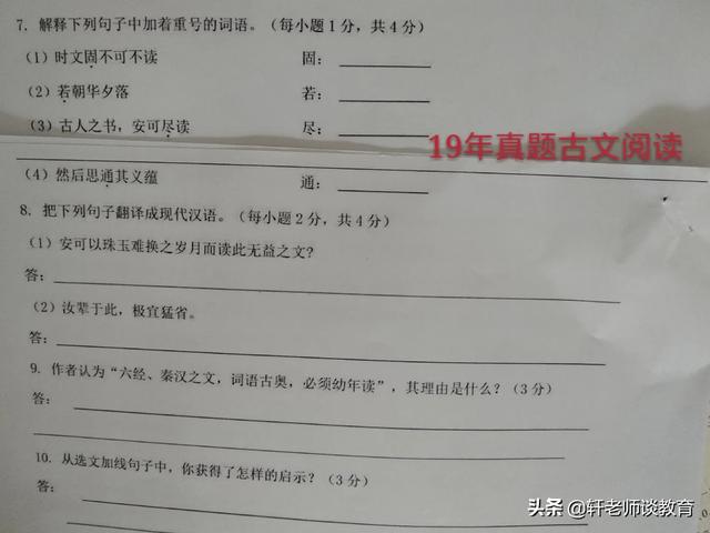 我们可以看图片中的第8题,这是18年河北省语文中考真题中的古诗文阅读中出现的题型,在上面19年的古文阅读中没有再出现。