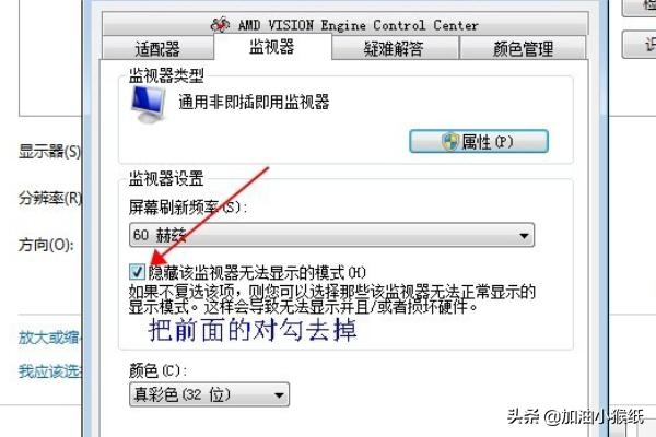 3、在监视器选项卡中去掉下方“隐藏该监视器无法显示的模式”前的对勾。